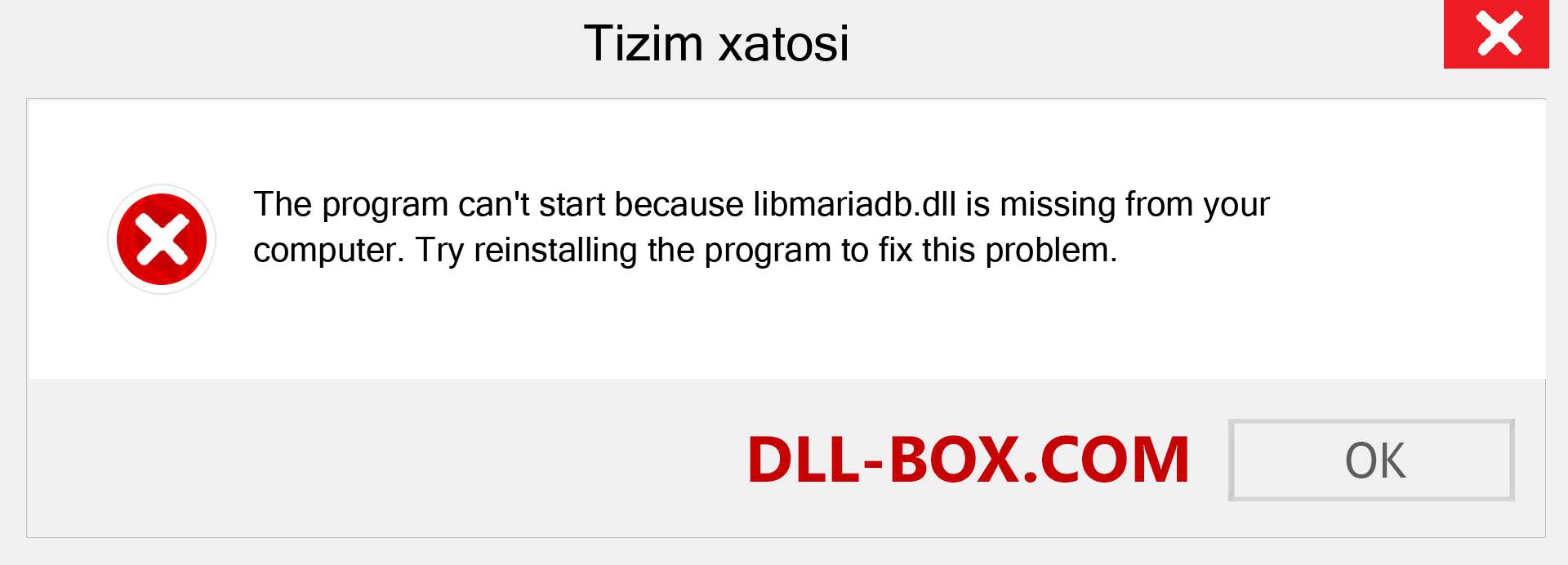 1. Dasturni ishga tushirib bo'lmaydi, chunki libmariadb.dll kompyuteringizda yo'q. Ushbu muammoni hal qilish uchun dasturni qayta o'rnatishga harakat qiling.